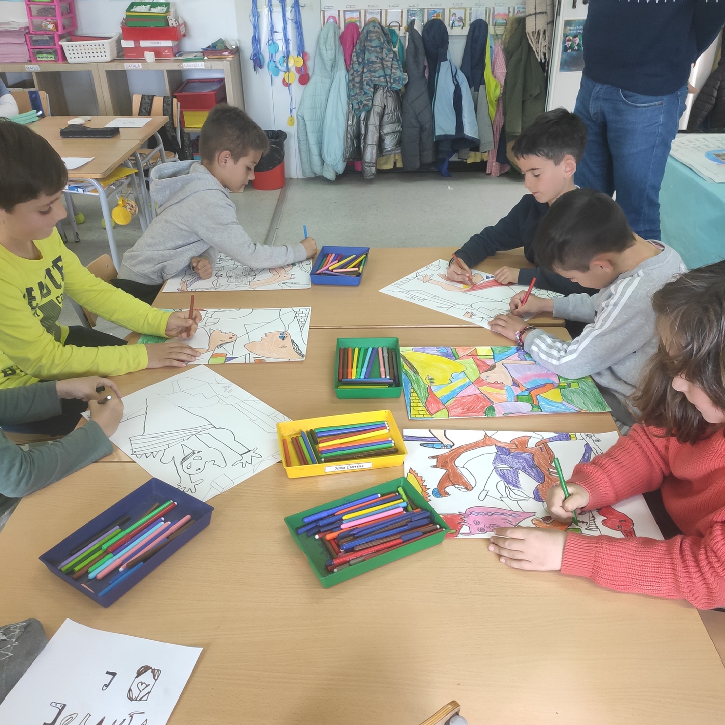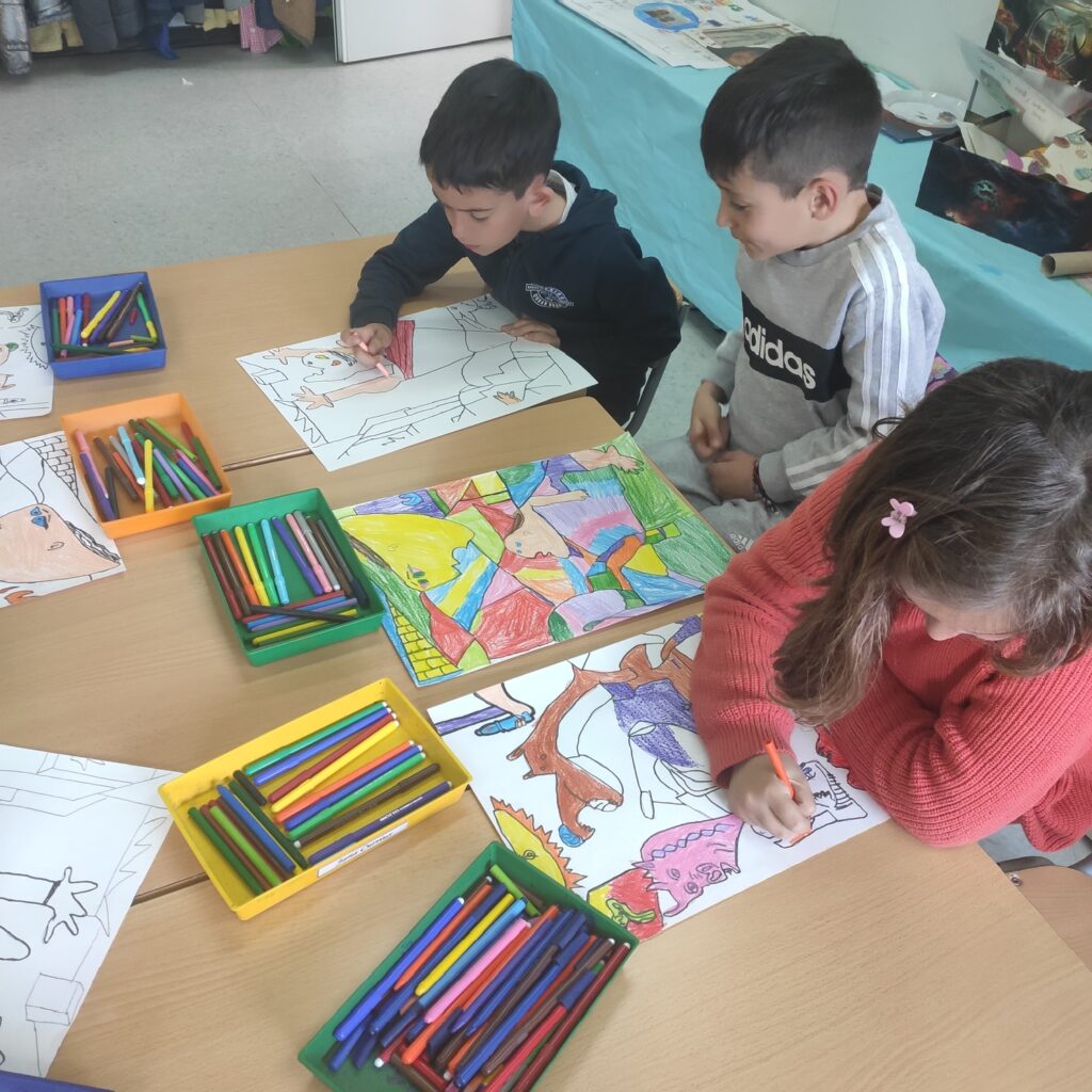 Els nens i nenes de 2n, han encetat un nou treball sobre el quadre del Gernika inclòs al projecte d’educació artística. Després d’una posta en comú de la importància i significat d’aquesta extraordinària obra de Picasso s’ha acordat realitzar una transformació del quadre per així donar-li color evocant el desig de pau i llibertat.