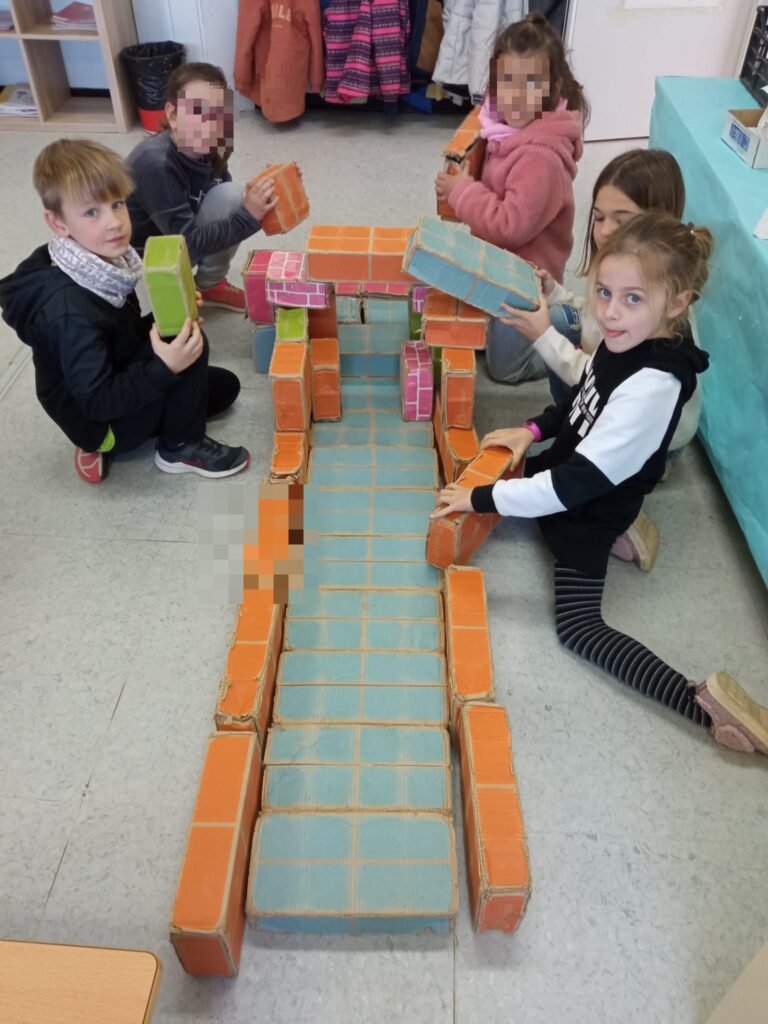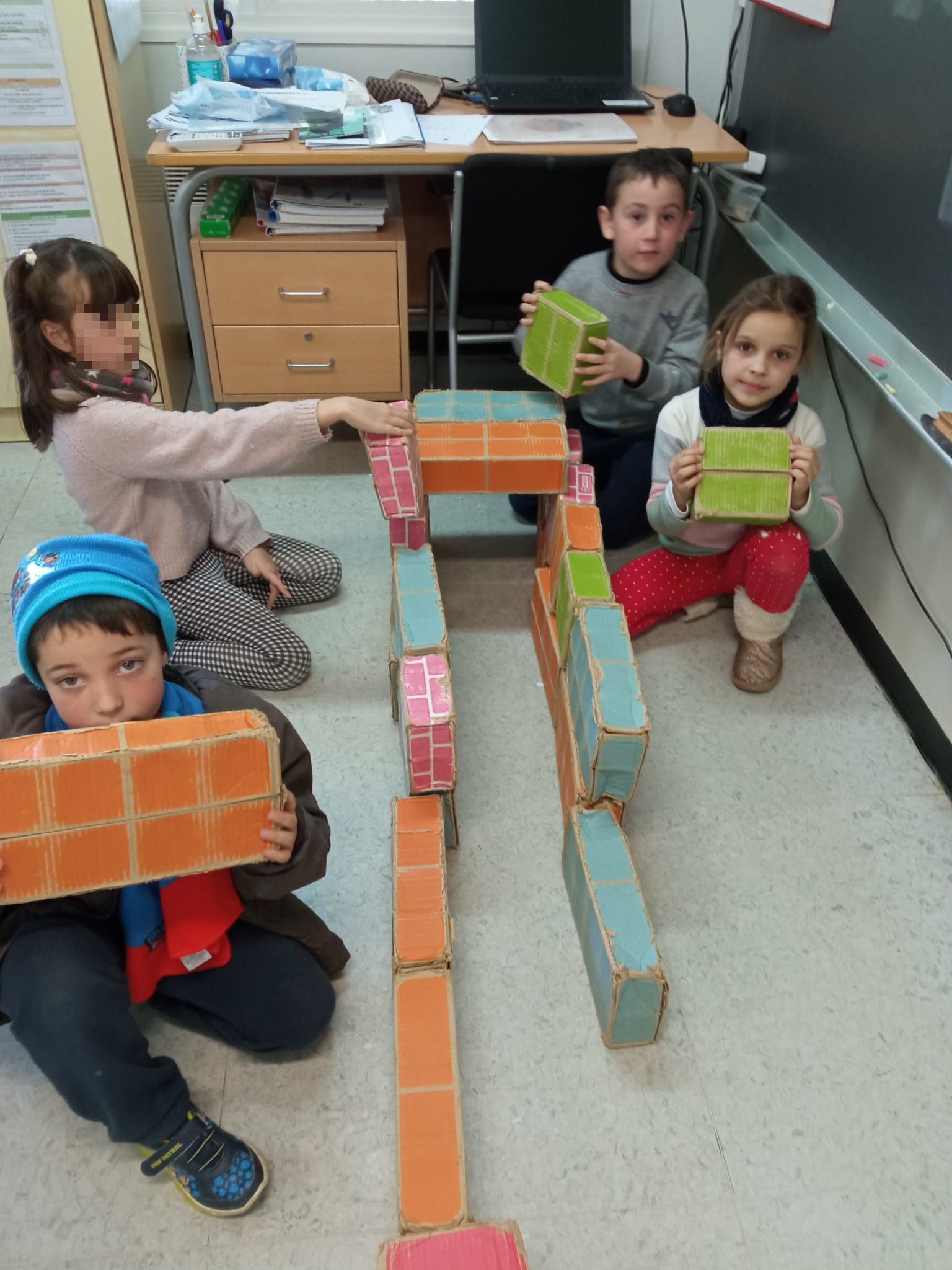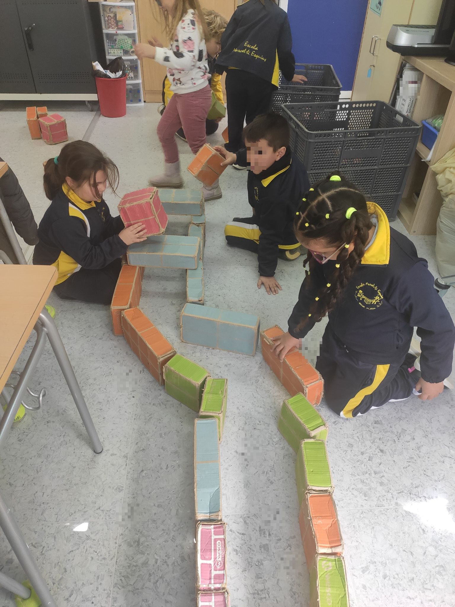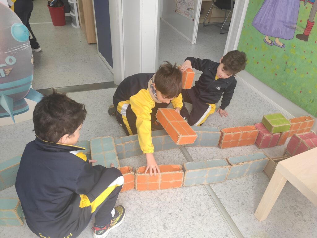Alumnes de Cicle Inicial recreant la muralla xinesa.