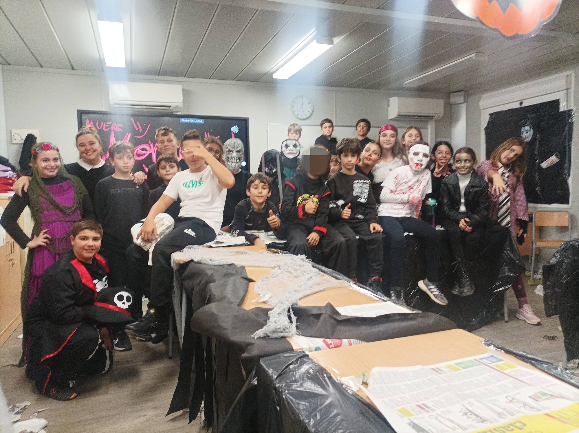 El passat 31 d’octubre els alumnes de 6è van acompanyar tots els tallers dedicats als grups d’Infantil i d’internivell de Primària. Van estar explicant el conte de la castanyada, ajudant a fer paperines, fent por als passatges del terror, pintant tatuatges, fent ballar al taller de “just dance”, ajudant a muntar els murals de tardor, organitzant jocs a la pista i també els jocs amb castanyes.