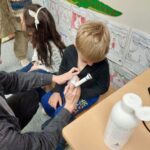 Aquest trimestre hem treballat el cos humà dins del projecte “Com som per dins?”, una de les activitats de les que hem pogut gaudir, ha estat la visita de la mare de la nostra companya Taqua, la Aisha i la seva companya de feina Angie. Ens han explicat com es forma dins la panxa un nadó, ens han ensenyat aparells que utilitzen en la seva feina i hem fet diferents activitats.
