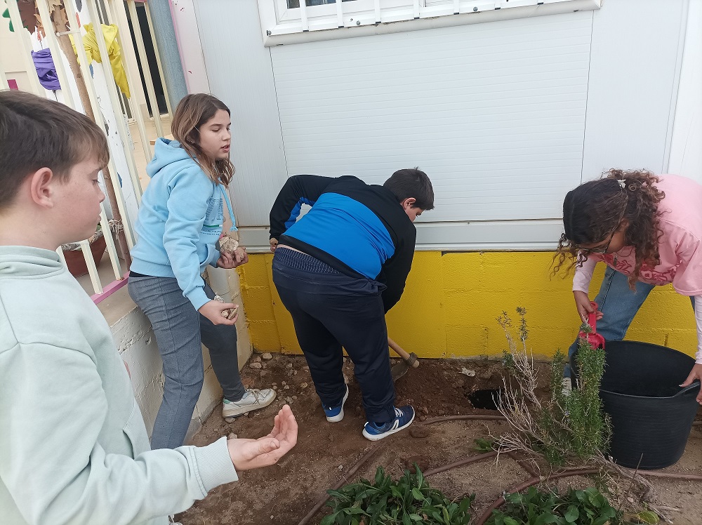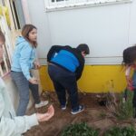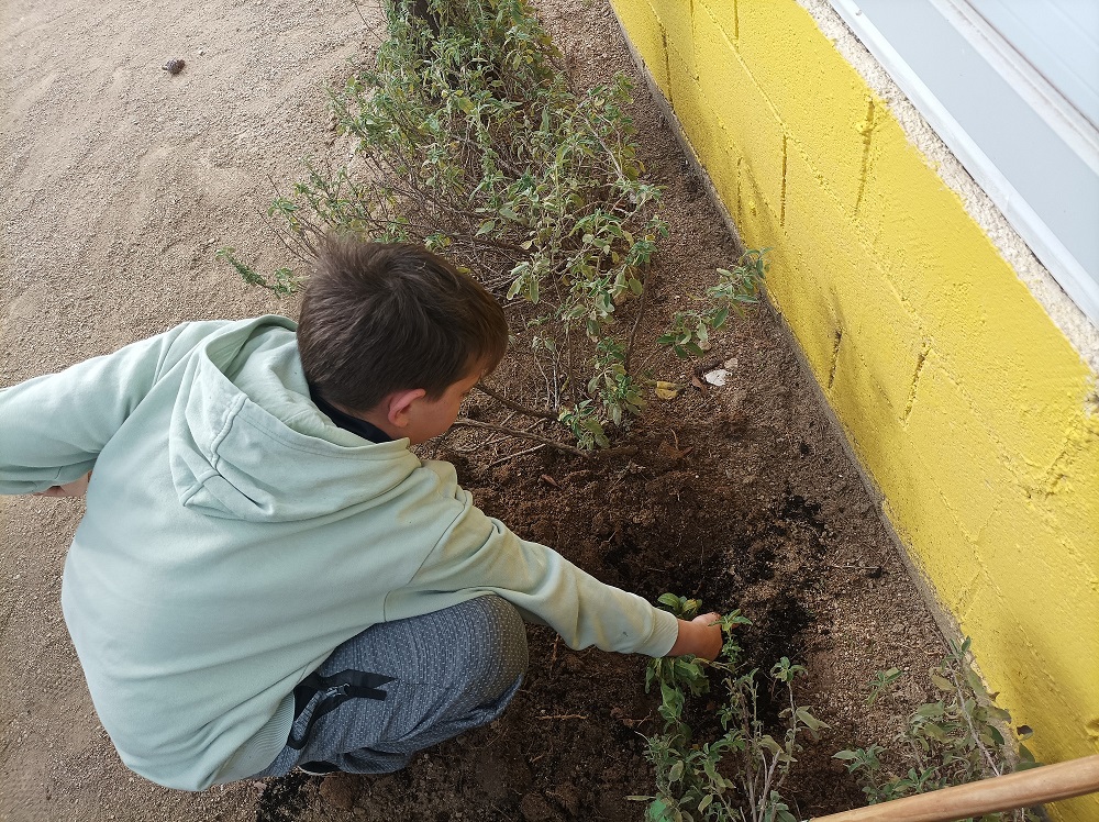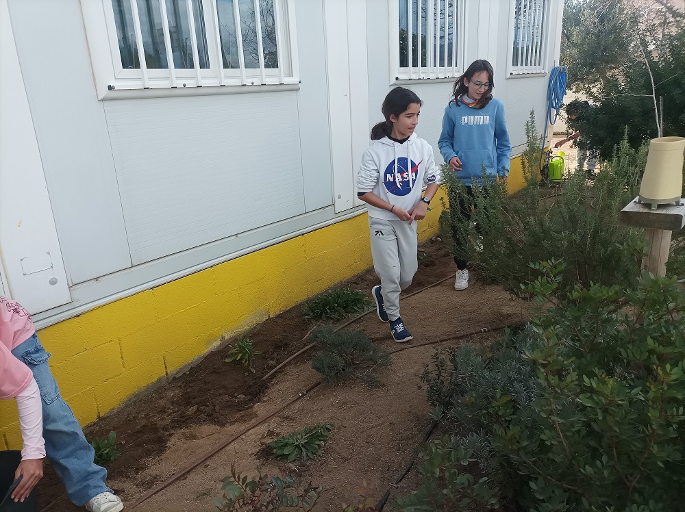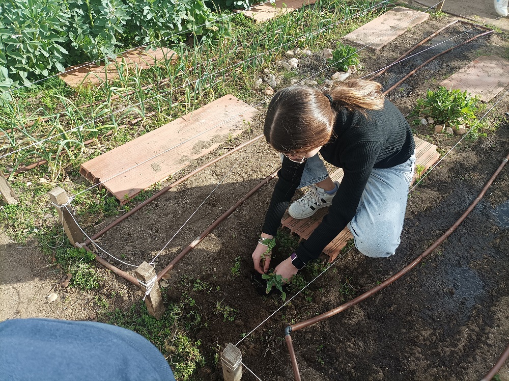 També hem fet feina de jardineria plantant calèndules per diferents parts de l’hort i la zona de la Pepita (la tortuga) que es reguen amb l’aigua de la rosada que cau de la teulada.