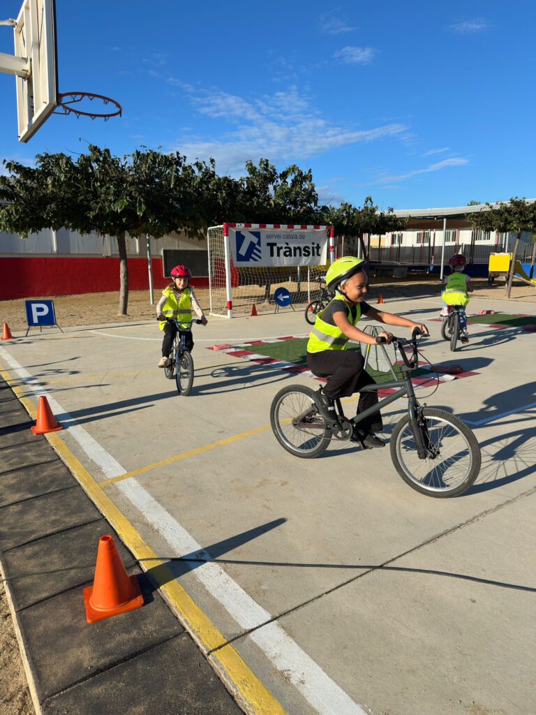 Aquest mes d’octubre, els alumnes de 3r hem participat en un taller de trànsit molt interessant. Durant la sessió, hem après quines són les senyals de circulació més habituals i quin significat tenen. També ens han explicat quina és la conducta adequada que hem de tenir quan circulem amb bicicleta pel poble, per tal de fer-ho amb seguretat i respectant les normes de convivència. Hem pogut posar en pràctica tot allò que hem après, fent circuits i activitats divertides. Ens ho hem passat mooooolt bé !!!!