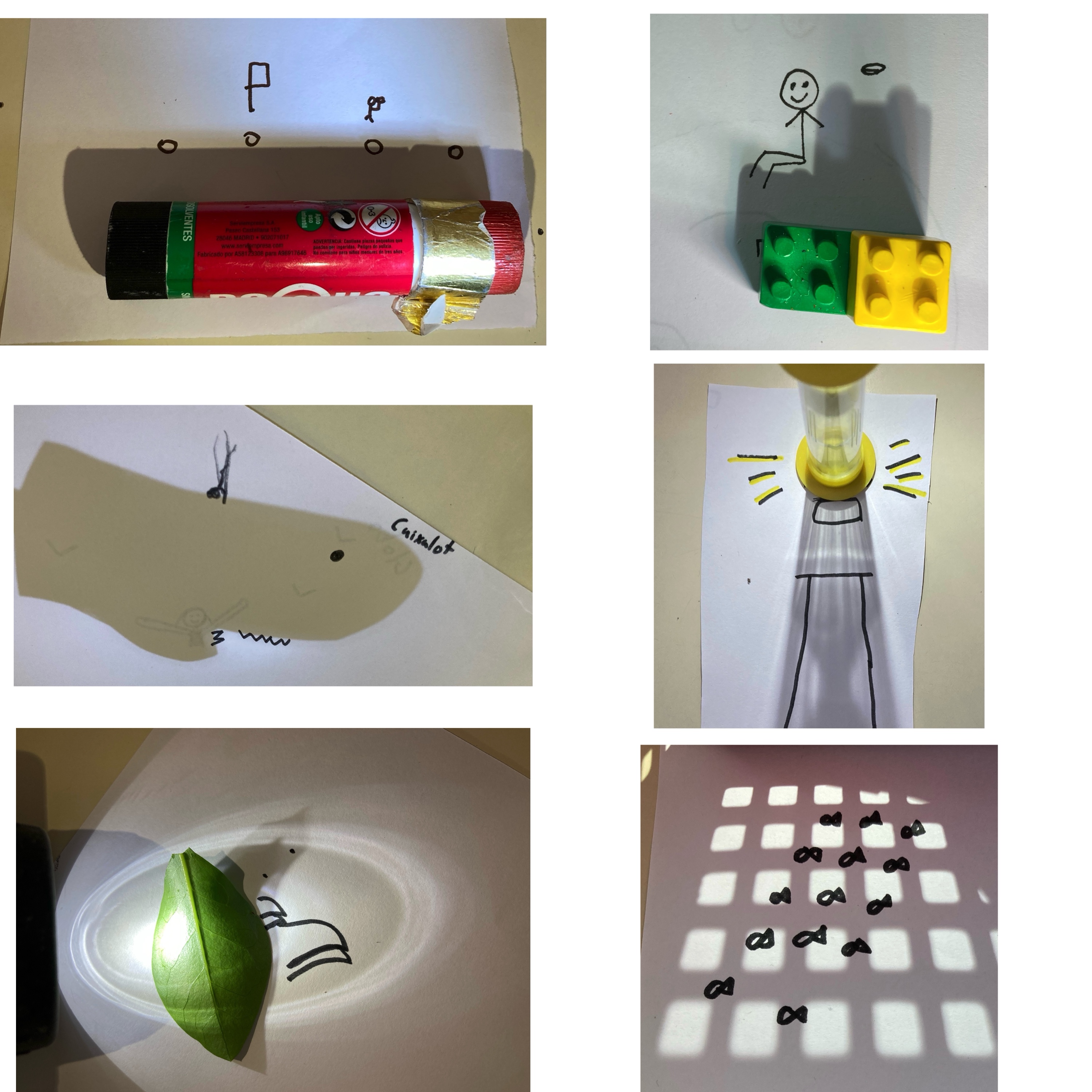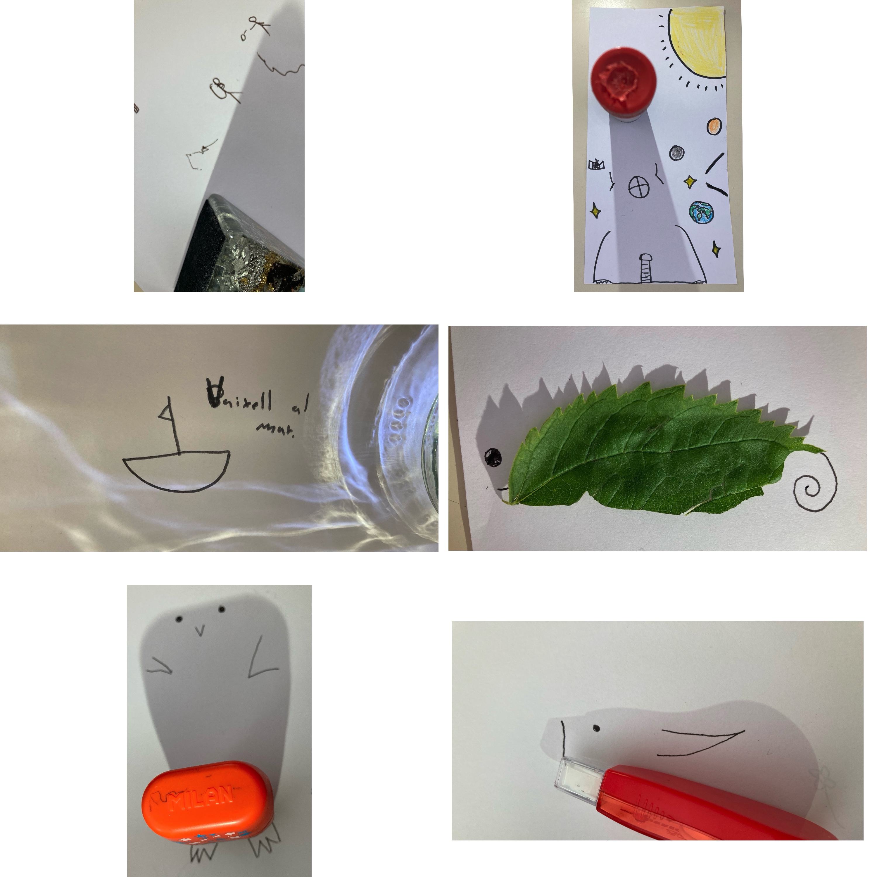 Hem fet dibuixos a través d’ombres d’objectes de la classe i us adjuntem unes imatges dels resultats 🙂 Sembla senzill però ens hi hem trencat força el cap!