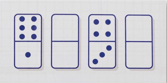 A la part superior de la segona fitxa i va el número cinc i a la inferior el dos. A la part de dalt de la quarta fitxa i va un tres i a la de baix un quatre. Així si començes a llegir des de la part de baix d’esquerra a dreta i quan arribes a l’última fitxa segueixes llegint de dreta a esquerra per la part de dalt pots llegir tots els nombres de l’u al sis.