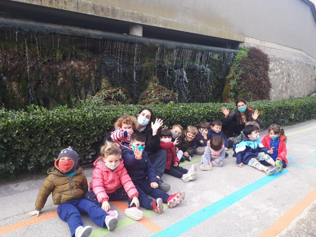 Quan tornem cap a l’escola ens ho passem molt bé caminant pels camins de colors que hi ha pintats al terra!!!