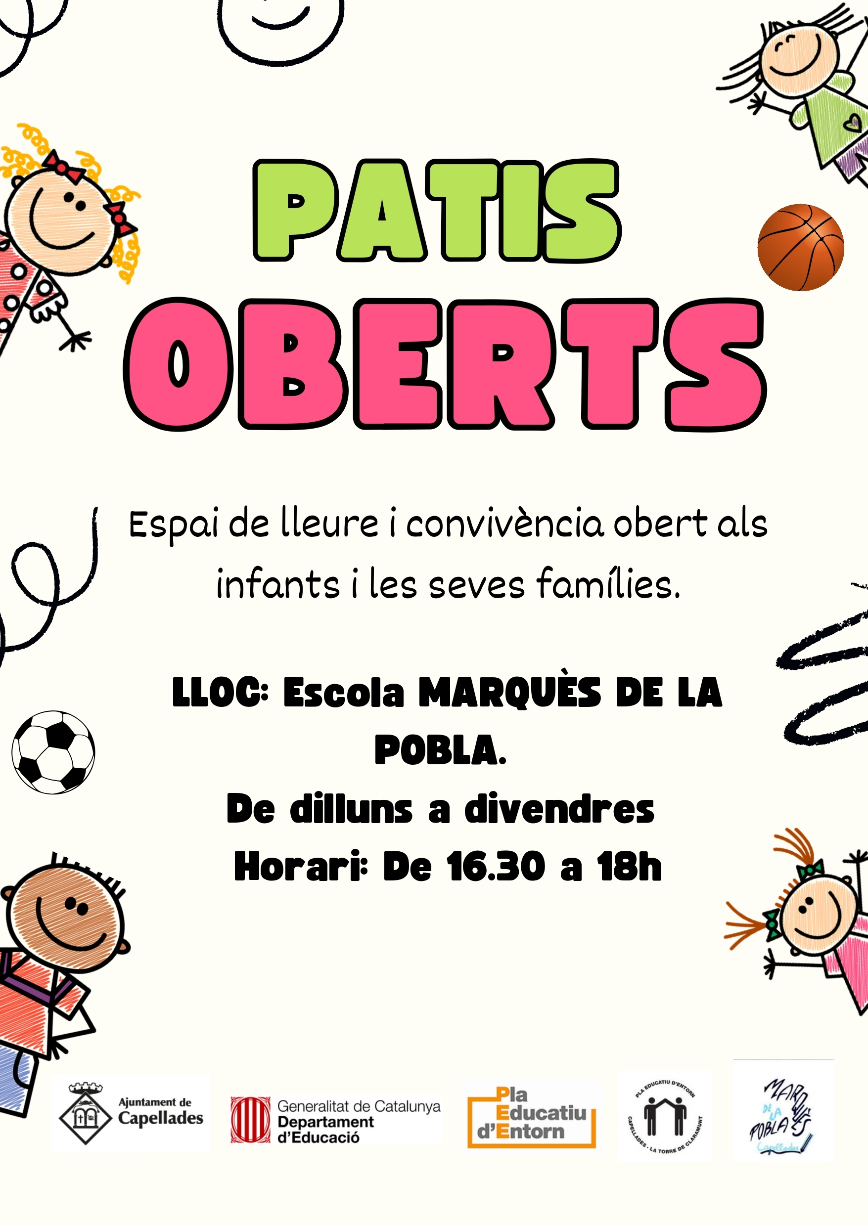 Funciona cada tarda, de dilluns a divendres, al pati de la nostra Escola Marquès de la Pobla on pots venir a jugar des que s’acaben les classes, de dos quarts de 5 fins les 6 de la tarda.