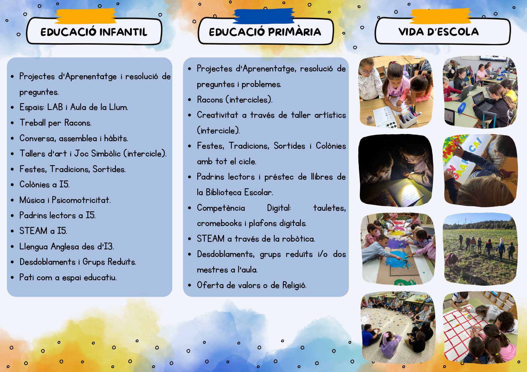 Podreu trobar tota la informació referent a la nostra escola al següent document: Informació famílies de nou accés a l’escola