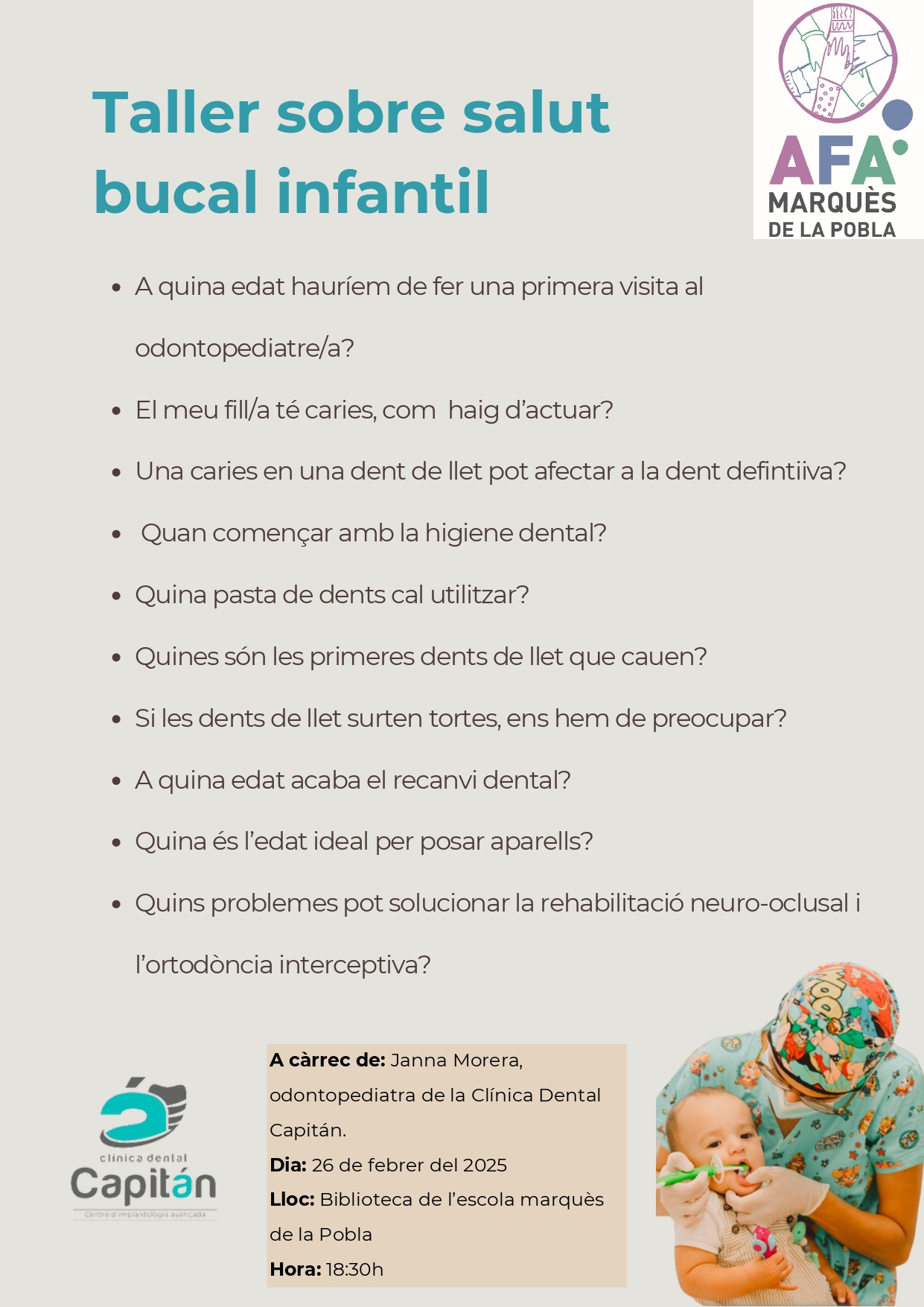 Us convidem a venir al taller sobre salut bucal infantil el dimecres 26 de febrer a les 18:30 a la biblioteca de l’escola. No us ho podeu perdre!
