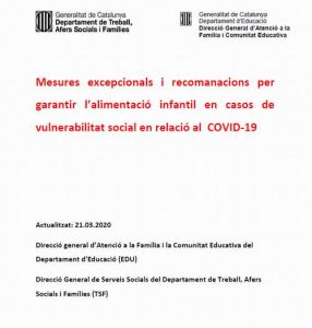 (2) Mesures excepcionals i recomanacions per garantir l’alimentació infantil en casos de vulnerabilitat social en relació al COVID-19 Feu un comentari / Per Equip docent / 22 de març de 2020 / Històric Informació Menjador Actualitzat el 21.3.2020 Per qualsevol dubte o consulta, dirigiu-vos al Consell Comarcal de l’Anoia (Cliqueu a la imatge)