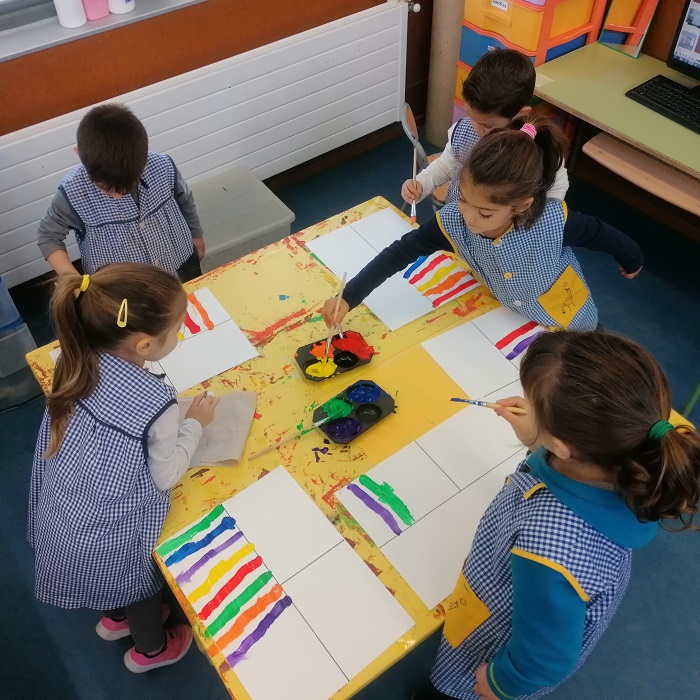ELS NENS I NENES DE P4 ESTEM DESCOBRINT I TREBALLANT L’ARTISTA SOL LEWITT, QUE ERA UN ARTISTA NORD-AMERICÀ QUE FEIA UNES OBRES D’ART MOLT ACOLORIDES I ORIGINALS. PINTAVA MURALS I GRANS PARETS AMB LÍNIES DE TOTS TIPUS: VERTICALS, HORITZONTALS, INCLINADES, CORBES… ELL MATEIX DEIA QUE EREN LÍNIES QUE ESTAVEN EN MOVIMENT.