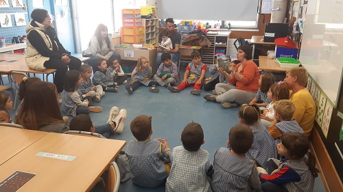 ALGUNES MARES I PARES DELS NENS I NENES DE LA CLASSE HAN VINGUT A L’ESCOLA A FER LA TRADICIONAL ACTIVITAT DE SANT JORDI. ENS HAN EXPLICAT UN CONTE D’UN CAVALLER, UN DRAC I UNA PRINCESA….UNA VERSIÓ UNA MICA DIFERENT I MOLT DIVERTIDA DE LA LLEGENDA.