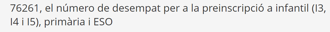 El número de desempat per a la preinscripció a infantil i primària Feu un comentari / Per Mireia Lirola / 8 de maig de 2025 / Portada Per a més informació, consulteu aquí!