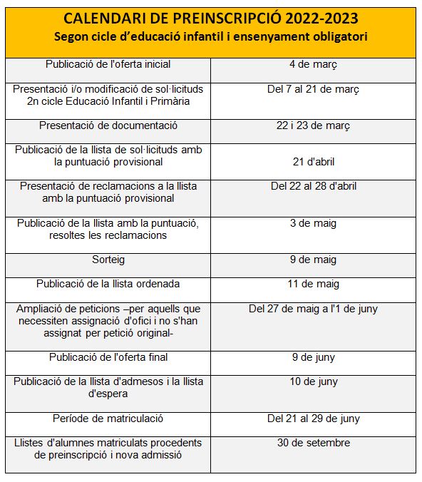 Trobareu més informació sobre la preinscripció als següents enllaços: