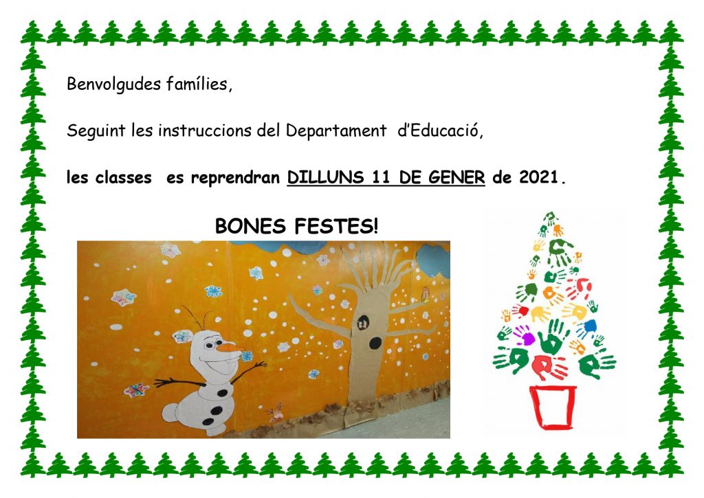 L’equip de mestres us desitja Bon Nadal i un any nou 2021 ple de salut, alegria i il·lusió!