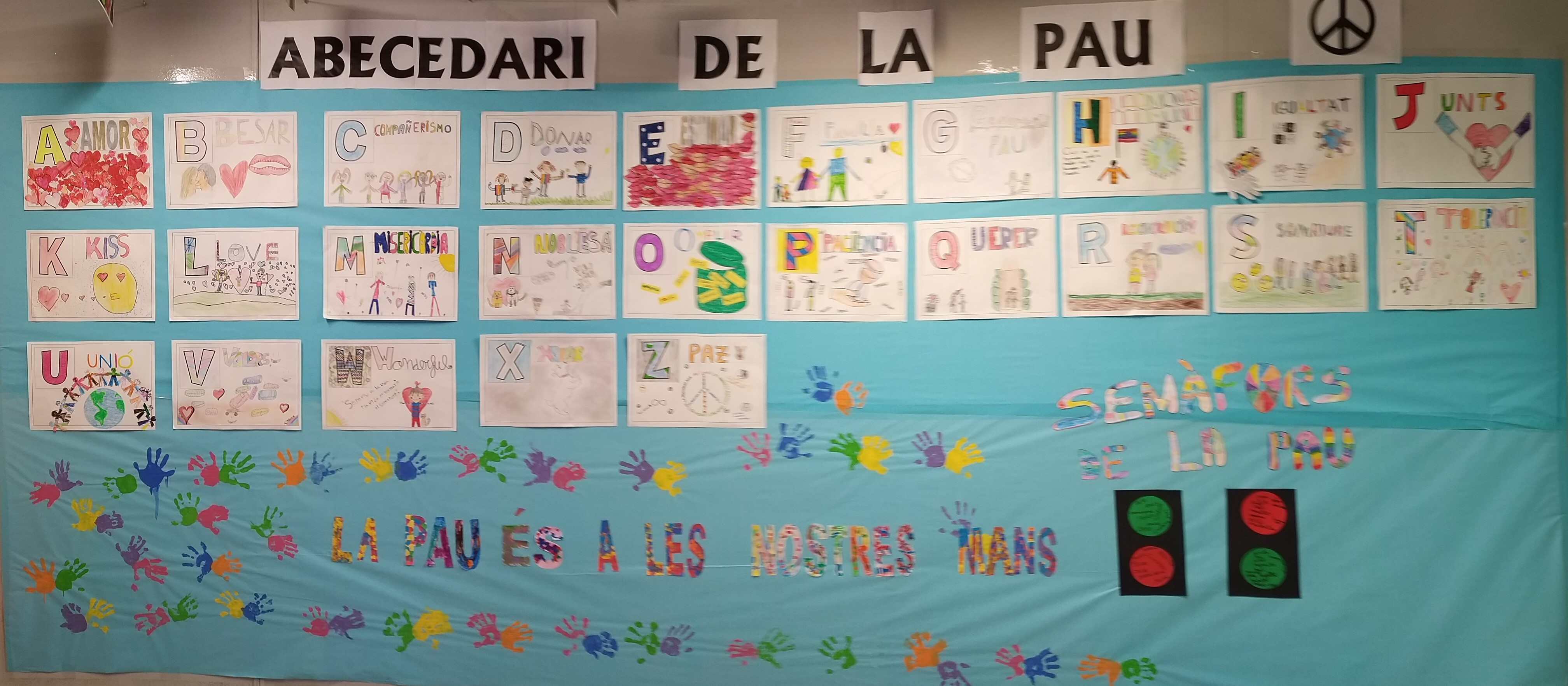 El resultat del treball realitzat a les aules sobre el dia escolar de la no violència i la pau ha estat aquest mural realitzat conjuntament per tots els alumnes.