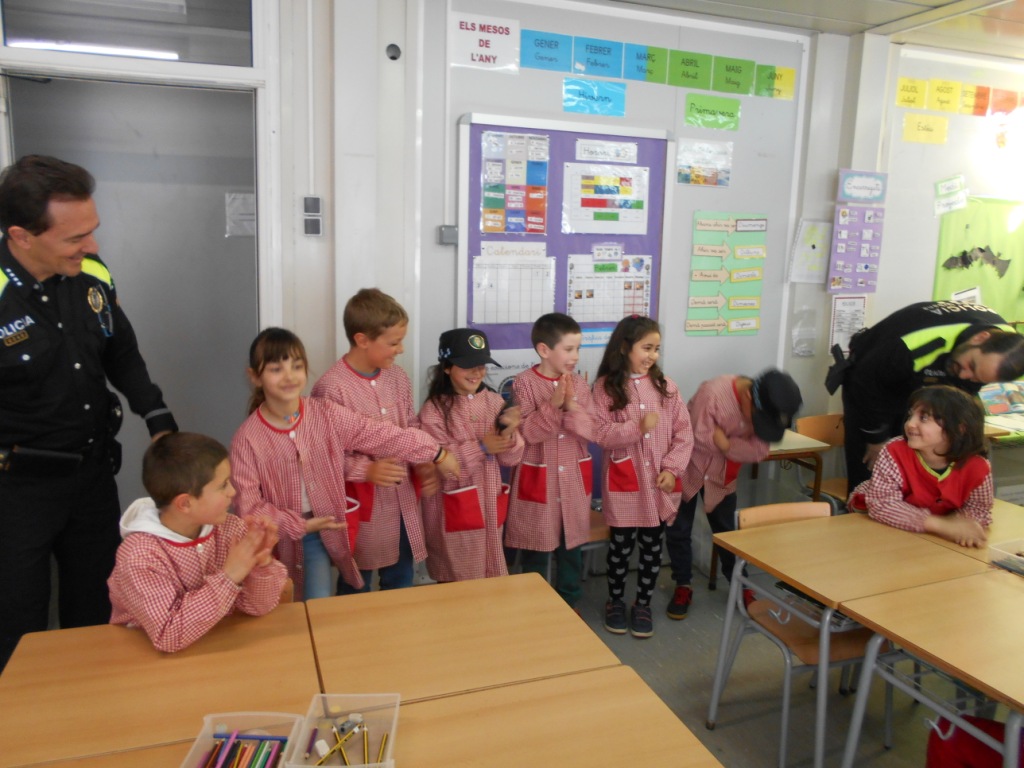 El dimarts va venir la guàrdia urbana a segon i ens van explicar un munt de coses! Ens van ensenyar tot el que porten a sobre quan surten a treballar i que parlen amb un codi secret. També vam aprendre el significat d’algunes senyals i la importància de circular bé pel  carrer.