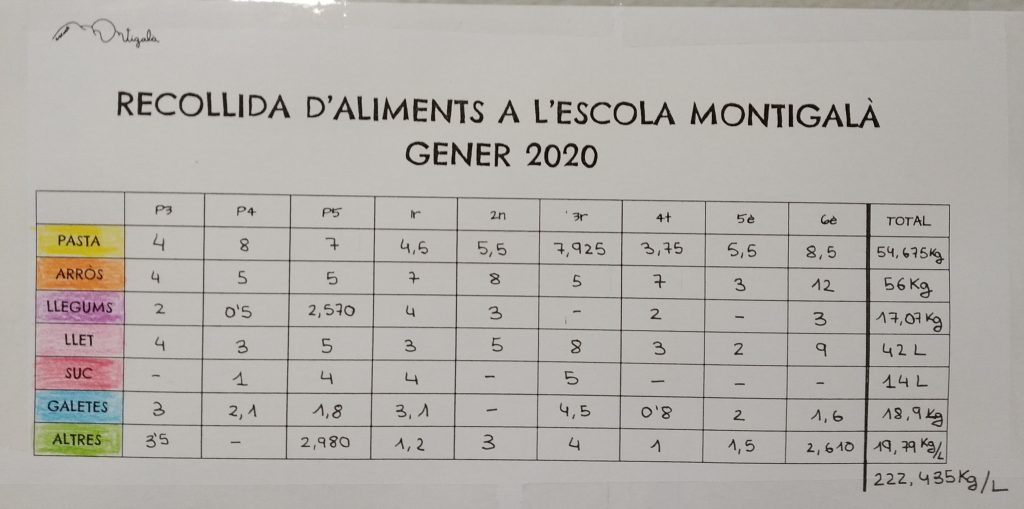 El passat dimecres 19 de febrer es va fer entrega a la Fundació Ateneu de Sant Roc dels 222,435 Kg d’aliments recollits a la 7ª cursa solidària de l’escola Montigalà. Gràcies a totes les famílies per la vostra col·laboració!