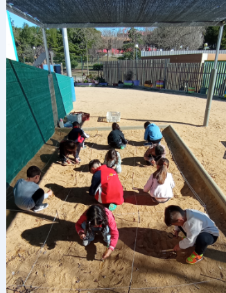 Avui al matí els nens i nenes de I5 s’han trobat una sorpresa. Ens ha arribat una carta per informar-nos que al pati hi havia alguna troballa. Al sortir hem vist el sorral delimitat per espais i les eines per poder excavar. I sabeu què? Hem trobat un petit sobre amb un ou de dinosaure