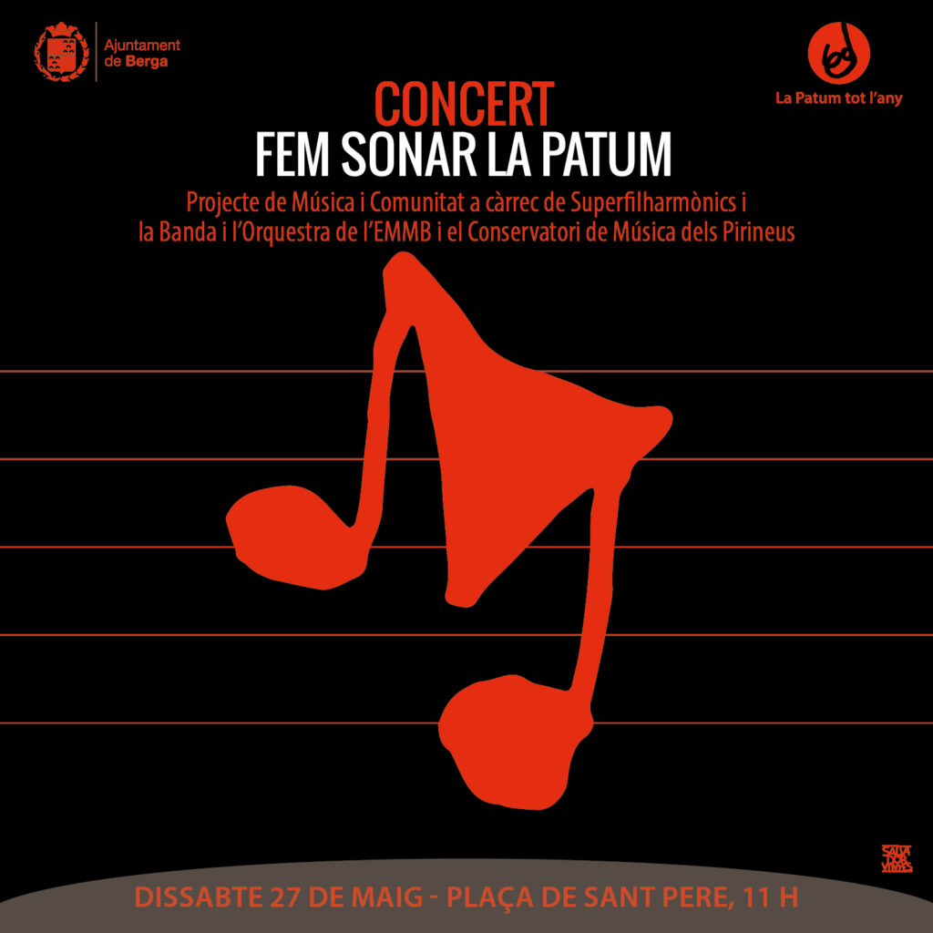 Aquest dissabte al matí a les 11.00 h., les orquestres dels Superfilharmònics, un dels programes de música en comunitat de l’Escola Municipal de Música de Berga, faran sonar la Patum a la Plaça Sant Pere.
