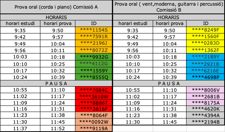 LLISTAT PROVISIONAL D’INSCRITS A LES PROVES D’ACCÉS AL CONSERVATORI 2025