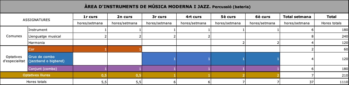 ÀREA D’INSTRUMENTS DE MÚSICA MODERNA I JAZZ. Percussió (bateria)