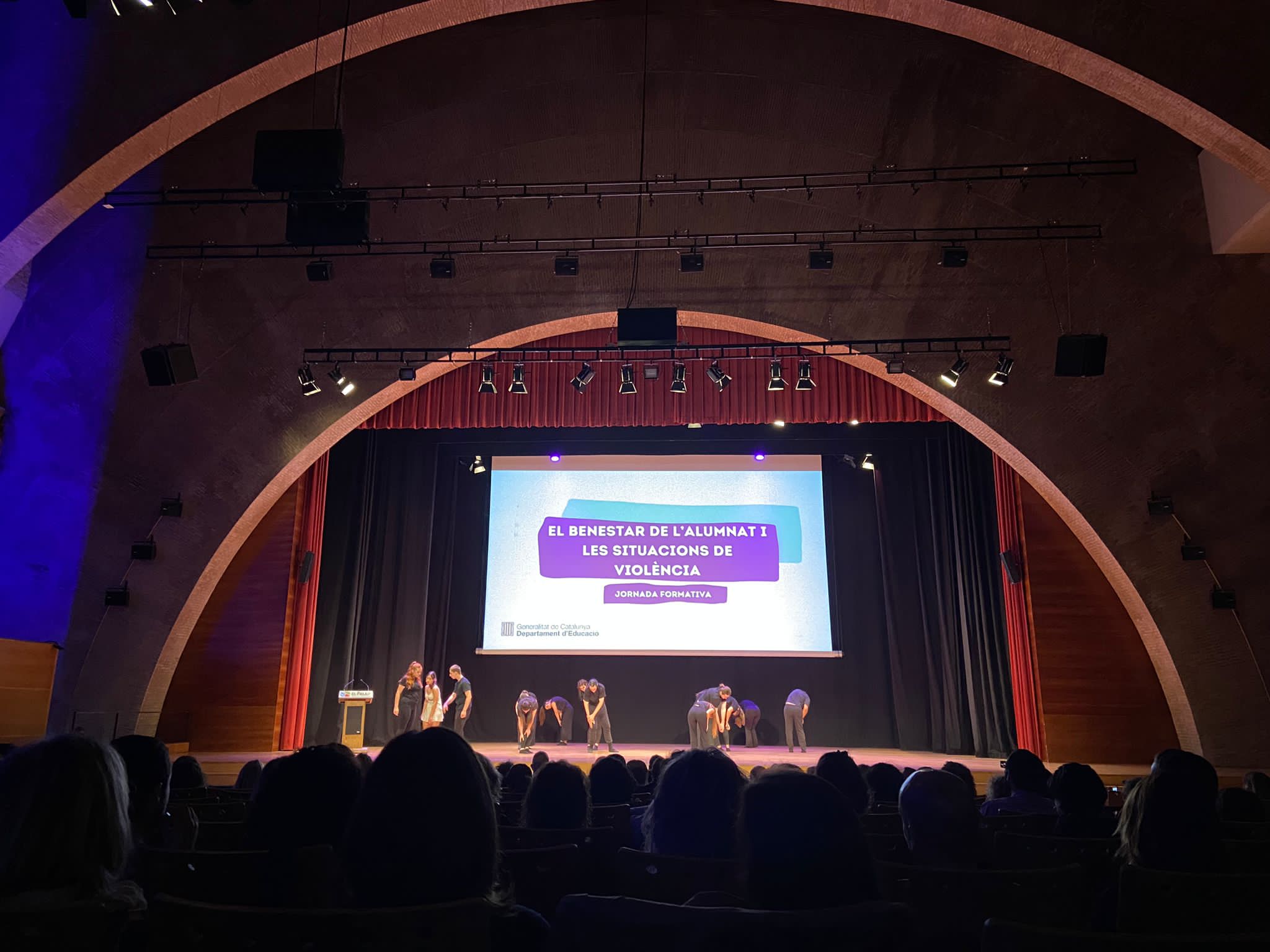 El passat 26 d’octubre, l’escola va participar en la jornada “El benestar de l’alumnat i les situacions de violència“, organitzada pel Departament d’Educació, al Palau Firal i de Congressos de Tarragona. L’objectiu era detallar la implementació de la nova coordinació de coeducació, convivència i benestar de l’alumnat (COCOBE), que s’incorpora com a novetat aquest curs escolar a tots els centres de primària i secundària. Com a representants de la nostra escola hi van assistir la directora, na Violeta Cristià i la COCOBE, na Gemma Martí.