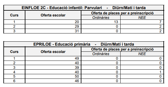 Preinscripció Tota la informació referent a la preinscripció per al curs 2026-2027 OFERTA 2026–27 Publicat el 3 de març de 2026:
