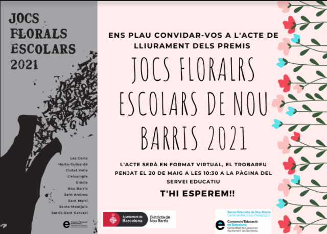 El passat 20 de maig es va celebrar l’entrega de Premis dels Jocs Florals Escolars de Nou Barris 2021. Aquestes són les classes i l’alumnat premiat de la nostra escola: A1 PROSA: L’estrella i l’encanteri de la mona de Pasqua de la Classe de 1r B1 PROSA: El nou drac 2021 de Shaira Techera (3r)