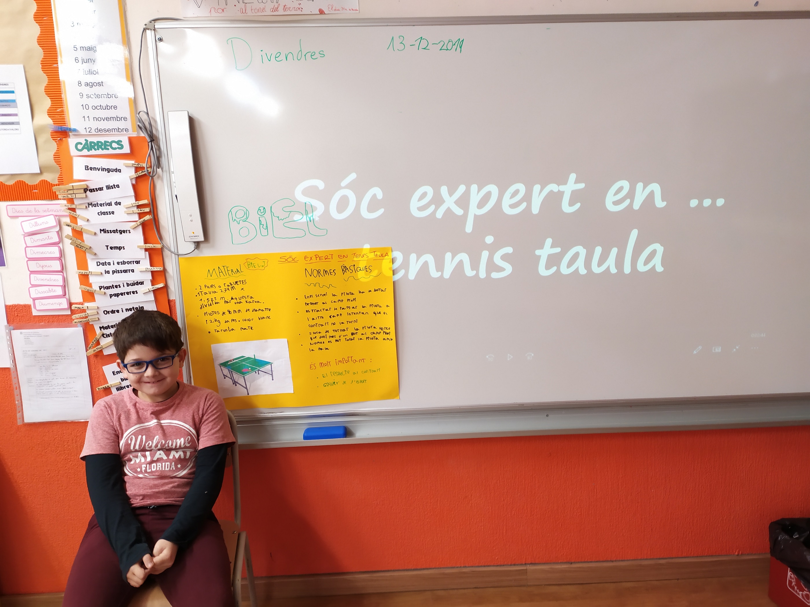 Avui el Biel ha sigut l’expert de 2n. És un gran jugador de tennis taula. Ens ha explicat les normes per jugar i ens ha ensenyat un vídeo molt divertit on jugava ell súper bé, fins i tot fent “piruetas”. Felicitats Biel per la teva habilitat jugant al tennis taula.