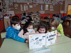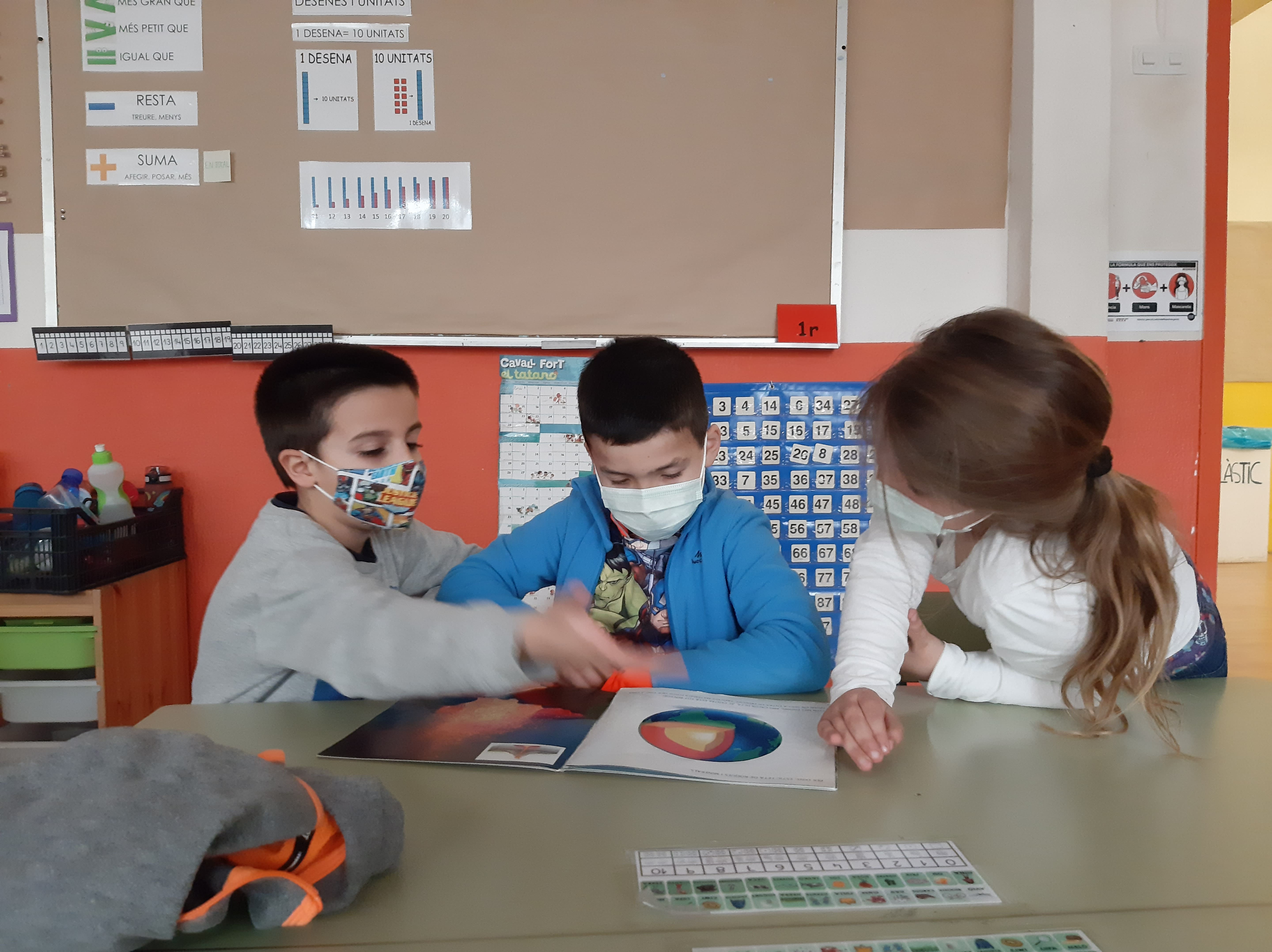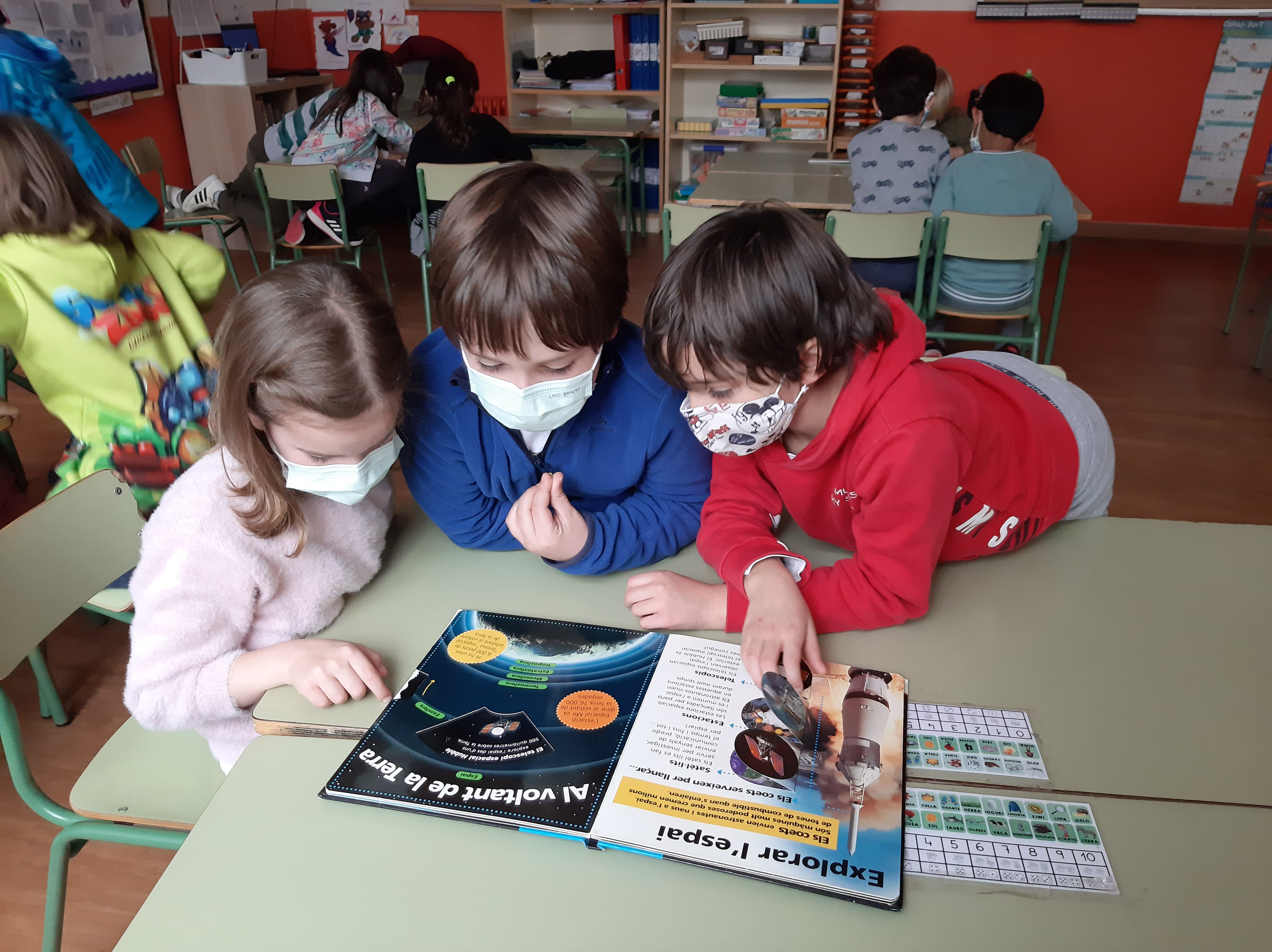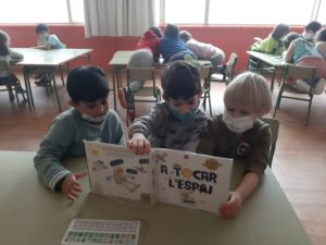 Per incentivar debat, preguntes i coneixement previs, hem distribuit un llibre sobre la temàtica del projecte a cada grup-taula. Els nens i nenes s’han dedicat a mirar les imatges, llegir enunciats i conversar entre ells. Després hem posat en comú què ens ha cridat l’atenció i ens hem plantejat preguntes.