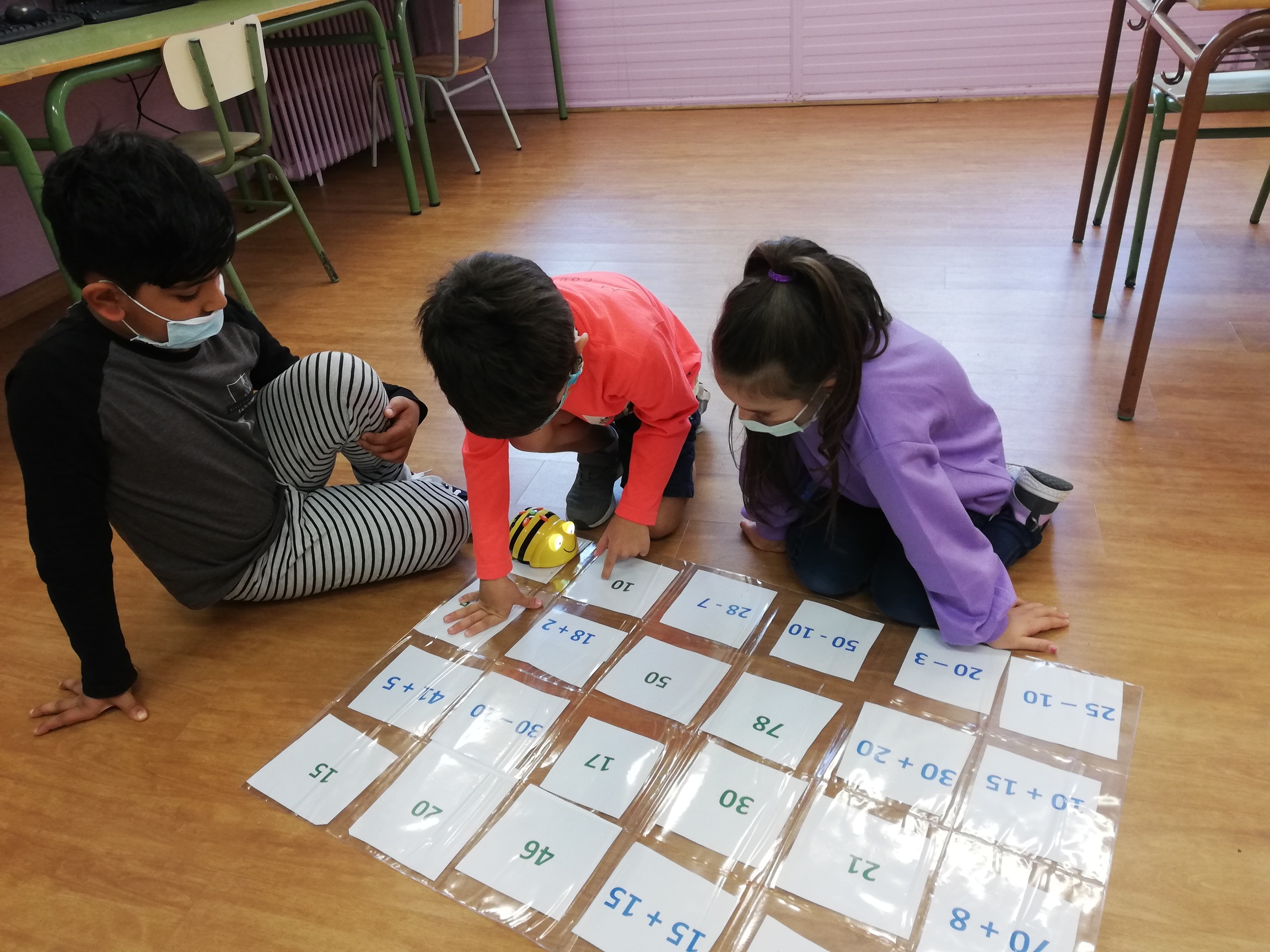 Coneixeu els Bee-bots? Són uns robots molt simpàtics. Els hem de programar donant instruccions de quan han d’avançar, girar, parar… Ens agrada molt fer-los servir per a aprendre matemàtiques i català.