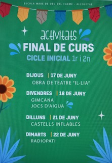 Ja HEM REALITZAT les activitats de final de curs, que s’han portat a terme durant els últims dies!!!Del dijous 17 i fins el dia 21 vam gaudir de:Cliqueu per veure en imatges les diferents activitats!Volem donar les gràcies a:– L’Ajuntament que ens subvenciona l’obra de teatre Il.lia.– L’AMPA que ens subvenciona els Castells inflables.– Al Josep i al Carles per organitzar una gimcana espectacular.Dimarts 22 finalitzarem amb el RADIOPATI de fi de curs!!!
