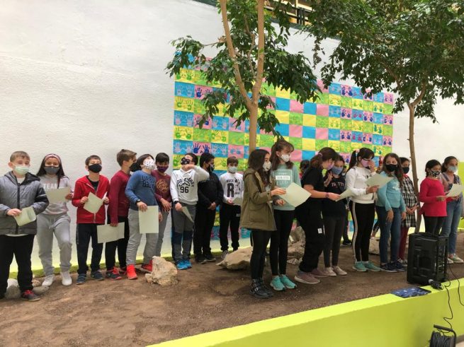 Les dues cançons les va acompanyar amb la guitarra la mestra de música de l’escola, la Mercè Pavia.