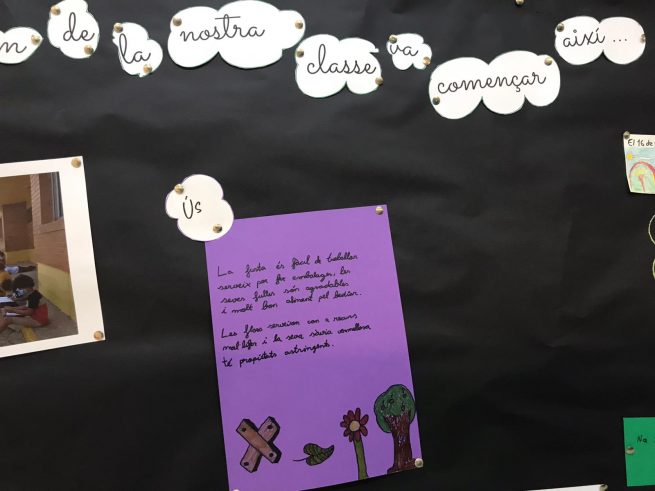 Enguany, per a introduir la metodologia ABP (Aprenentatge Basat en Projectes) al nostre alumnat, han realitzat un primer projecte relacionat amb el nom de la classe. Cada classe ha rebut el nom d’un dels arbres, plantes o flors que tenim al pati de l’escola.