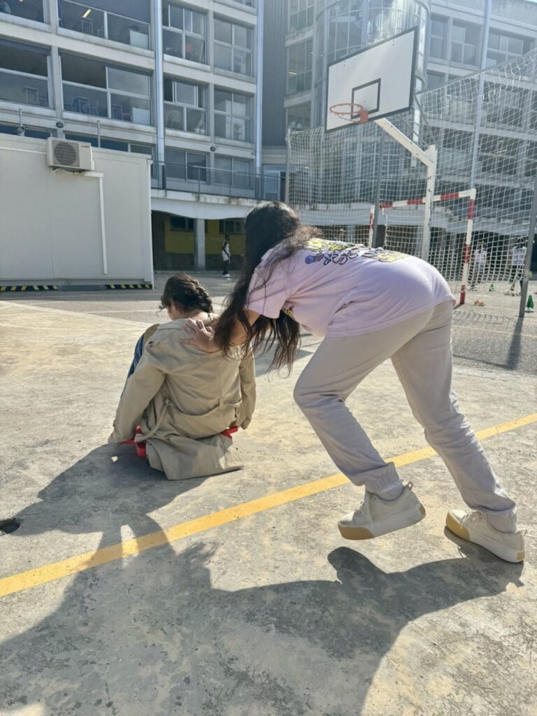 Aquesta tarda, els nens i nenes de la comunitat de mitjans han participat en una gimcana al pati de l’escola