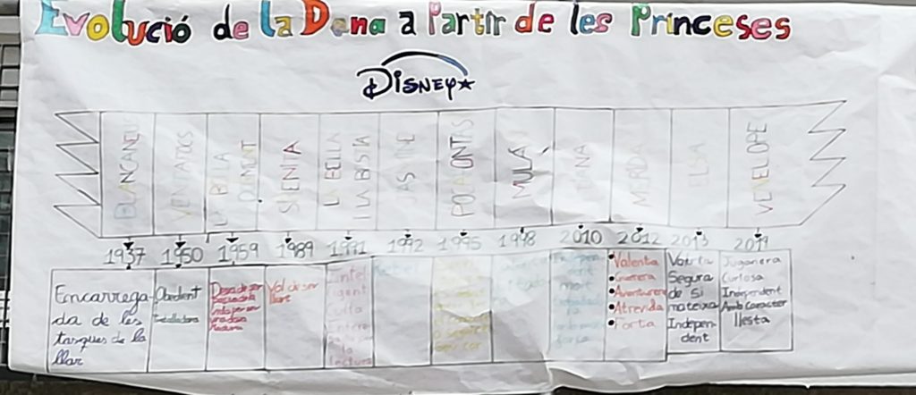 A 6è hem treballat a partir d’un vídeo on es reflecteix l’evolució que ha anat fet la dona a través de les princeses Disney. I també, hem investigat invents creats per dones que són molt útils a la vida diària.