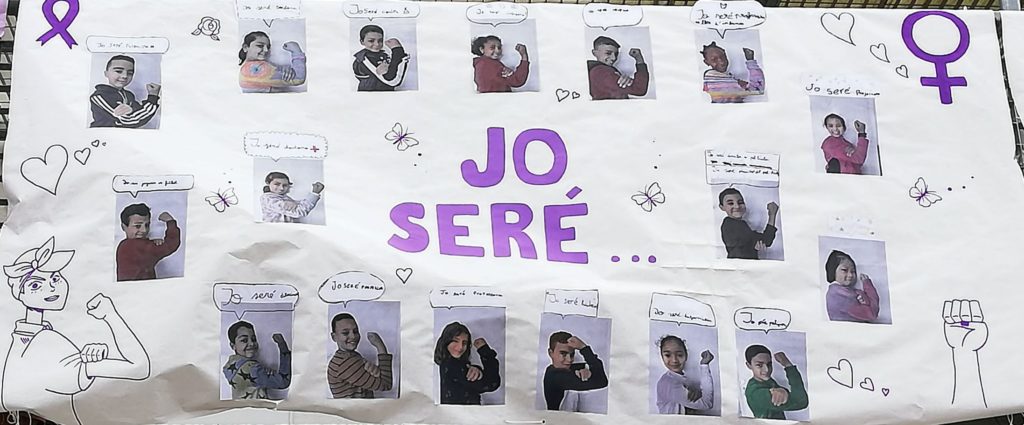 A la Comunitat de Mitjans hem fet rotllanes de reflexió del paper de les dones que coneixem i de les injustícies que sabem que hi ha. Després s’ha enfocat amb la perspectiva de les professions si n’hi havia d’homes i de dones o no. Vam acabar fent els murals del «jo seré», utilitzant la imatge de la dona del «yes we can» que empodera a la dona.