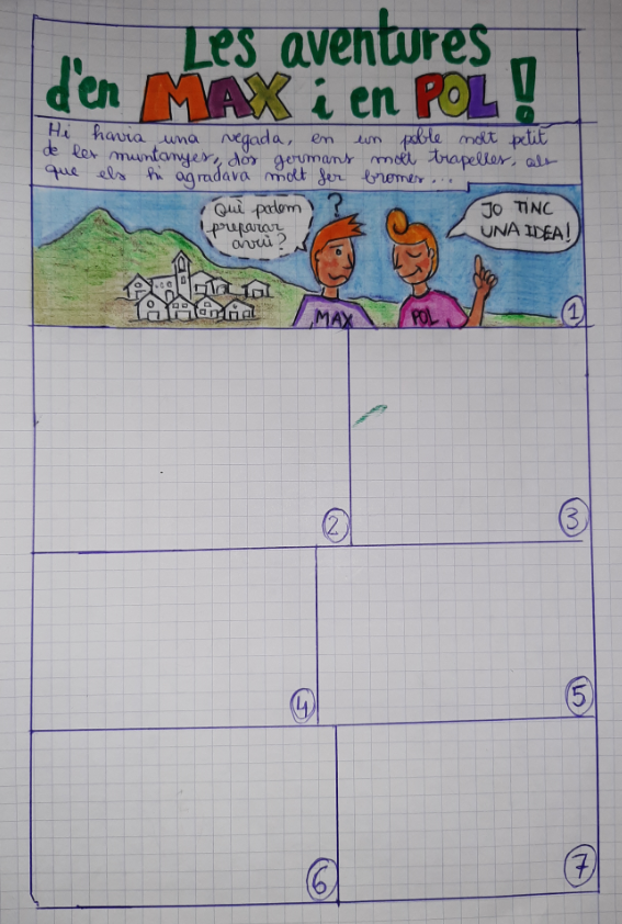 Hem començat un còmic que es diu “LES AVENTURES D’EN MAX I EN POL”, hem pogut fer la introducció del còmic (com es diuen i on viuen), però no sabem continuar-lo!