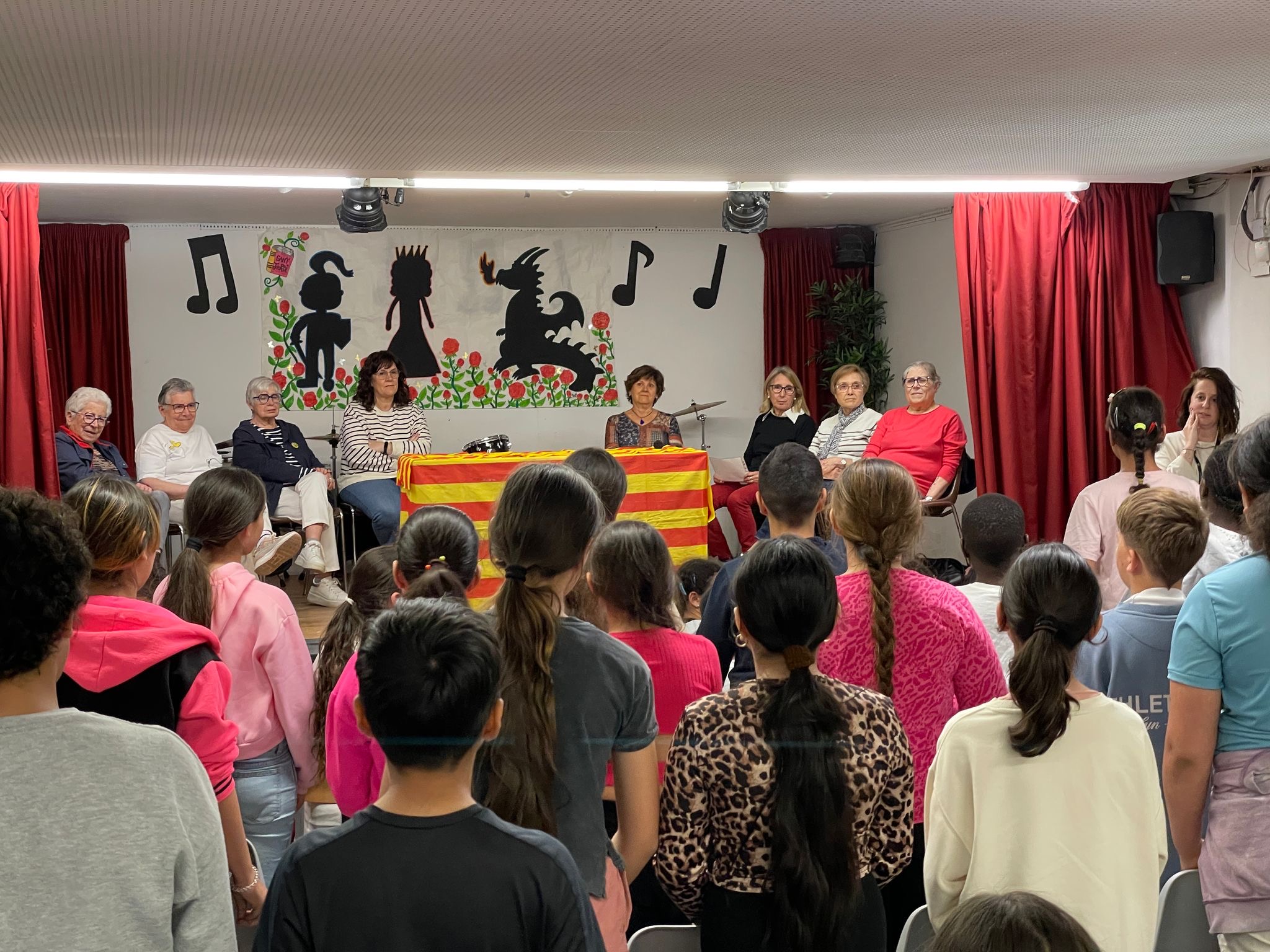 Per celebrar la diada de Sant Jordi, l’alumnat de 4t, 5è i 6è va compartir una activitat molt especial amb el grup de Dones amb Iniciativa. Junts van gaudir d’un emotiu recital de poemes, amb la participació de famílies que van poder entrar a veure l’acte i formar part de la festa.