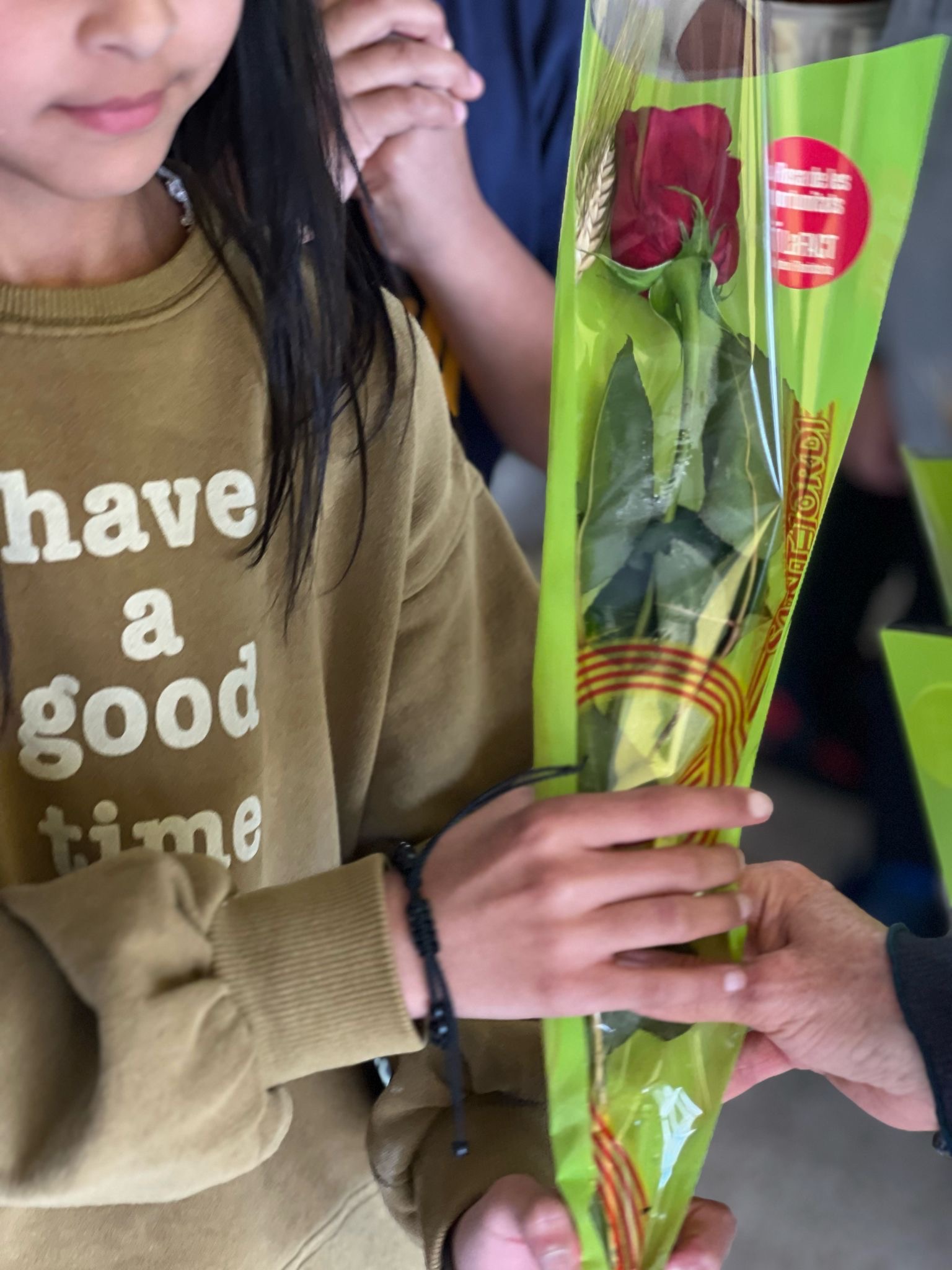 Les Dones amb Iniciativa van portar roses i llibres per a tothom, mantenint viva la tradició d’aquesta diada tan significativa. Per acabar, tothom va poder gaudir d’un berenar amb coca, tancant una jornada molt especial i plena de cultura.