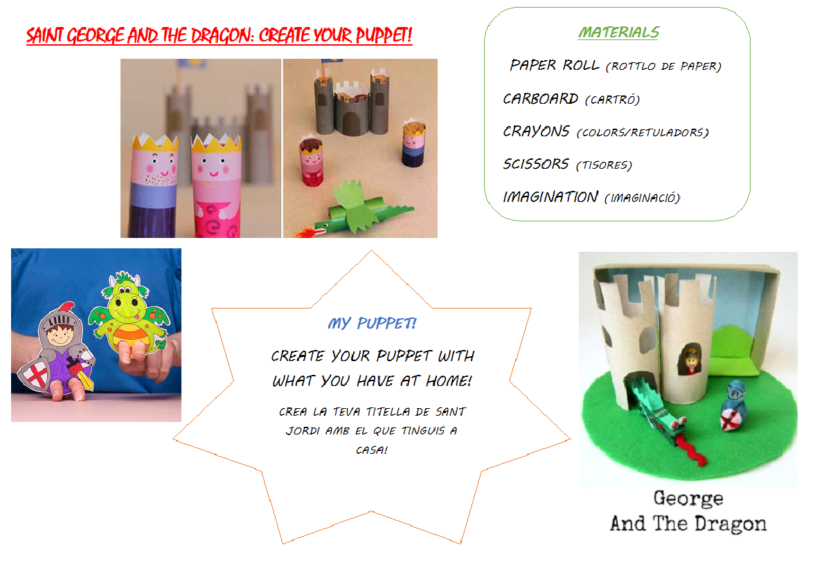 PER ACABAR, SI VOLS, POTS FER UNA “PUPPET” (TITELLA) DE SANT JORDI!