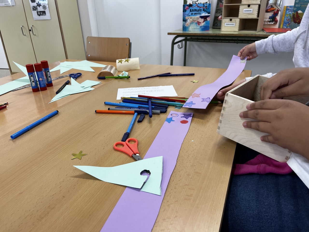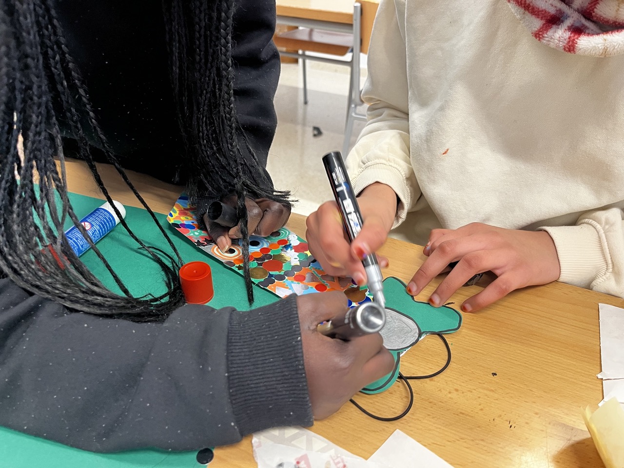 Aquest matí, l’alumnat de la comunitat de grans ha gaudit d’una jornada especial i molt creativa per celebrar el Carnestoltes. Seguint l’esperit d’aquesta festivitat tan divertida, nens i nenes s’han barrejat en diferents grups per participar en diversos tallers artístics.