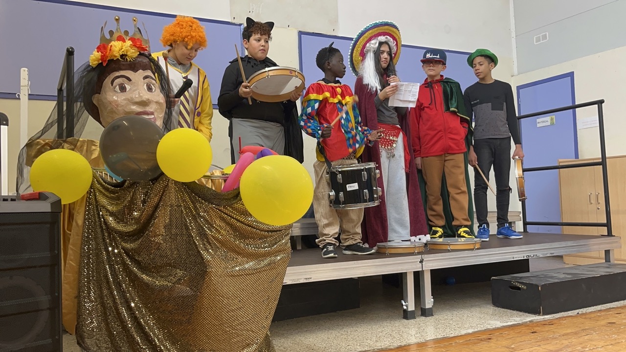 Aquesta tarda hem rebut una visita molt especial a l’escola… La Reina Carnestoltes ha arribat amb el seu entusiasme i la seva alegria contagiosa per donar inici a una setmana plena de diversió i disbauxa! Amb el seu estil esbojarrat i la col.laboració dels alumnes de 6è, ens ha anunciat les consignes que haurem de seguir cada dia de la setmana vinent.