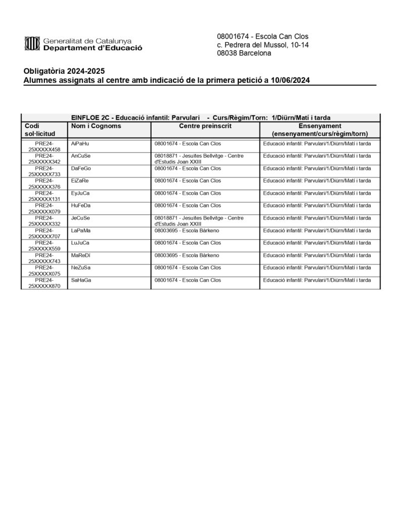 A data d’avui, s’ha publicat l’alumnat assignat al centre amb indicació de primera opció.