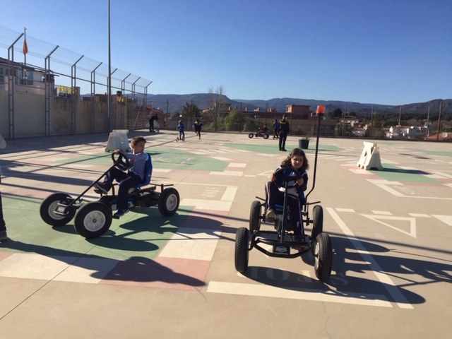A la tarda l’Emma i el Dani ens han portat cap al parc d’educació viària i ens han ofert un magnífic taller amb patinets, karts de pedals i motos. Hem après les senyals de trànsit per poder circular pel parc.