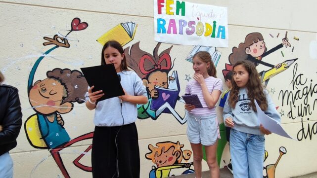 Per celebrar la setmana de Sant Jordi, petits i grans hem sortit al pati de l’escola per recitar poemes i compartir una estona plegats. Durant l’activitat, l’alumnat de tots els cursos ha participat en el recital. També s’han lliurat els premis del concurs de Black Out Poetry (poesia revelada). Enguany, els guanyadors han estat l’Alma, la Maria, la Itziar, en Luca, l’Iris i en Salahedin.