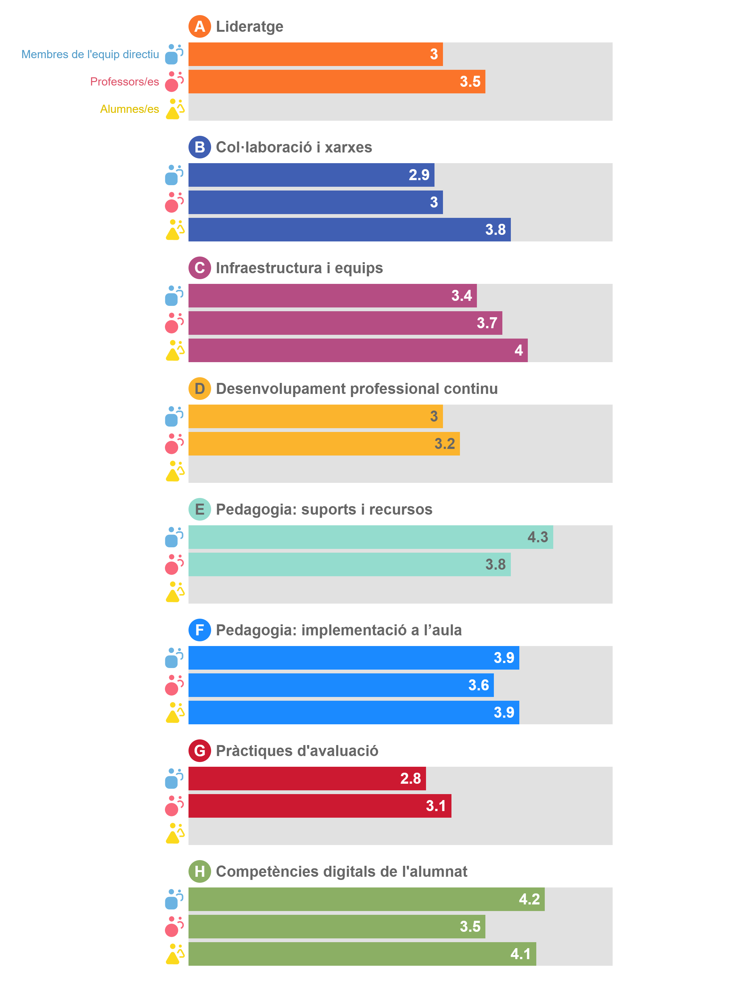 L’escola ha utilitzat l’eina SELFIE per fer la diagnosi dels docents i de l’alumnat. Els resultats d’aquesta eina son els següents: