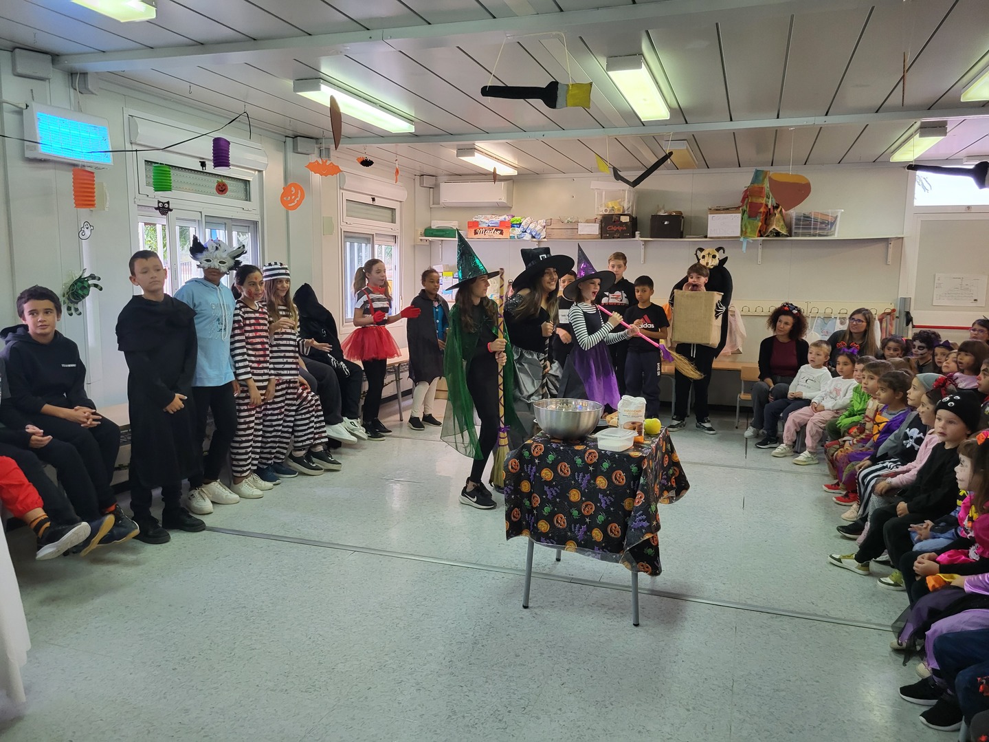 Per tal que el dia de la representació de Halloween sigui exitosa, en les altres classes a l’hora d’anglès es practiquen les cançons i balls. D’aquesta manera, el públic comprèn amb més facilitat l’argument de la petita representació teatral, gràcies a les cançons es practica el vocabulari i pot interactuar amb els grans actors i actrius que tenim a cada promoció Ganxeta! Enhorabora. Ara només queda passar un Halloween de por!!!!!