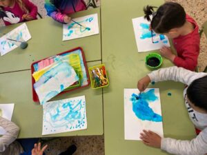 Fa uns dies vam aprofitar l’aigua i els gots de l’experiment per fer un dibuix!