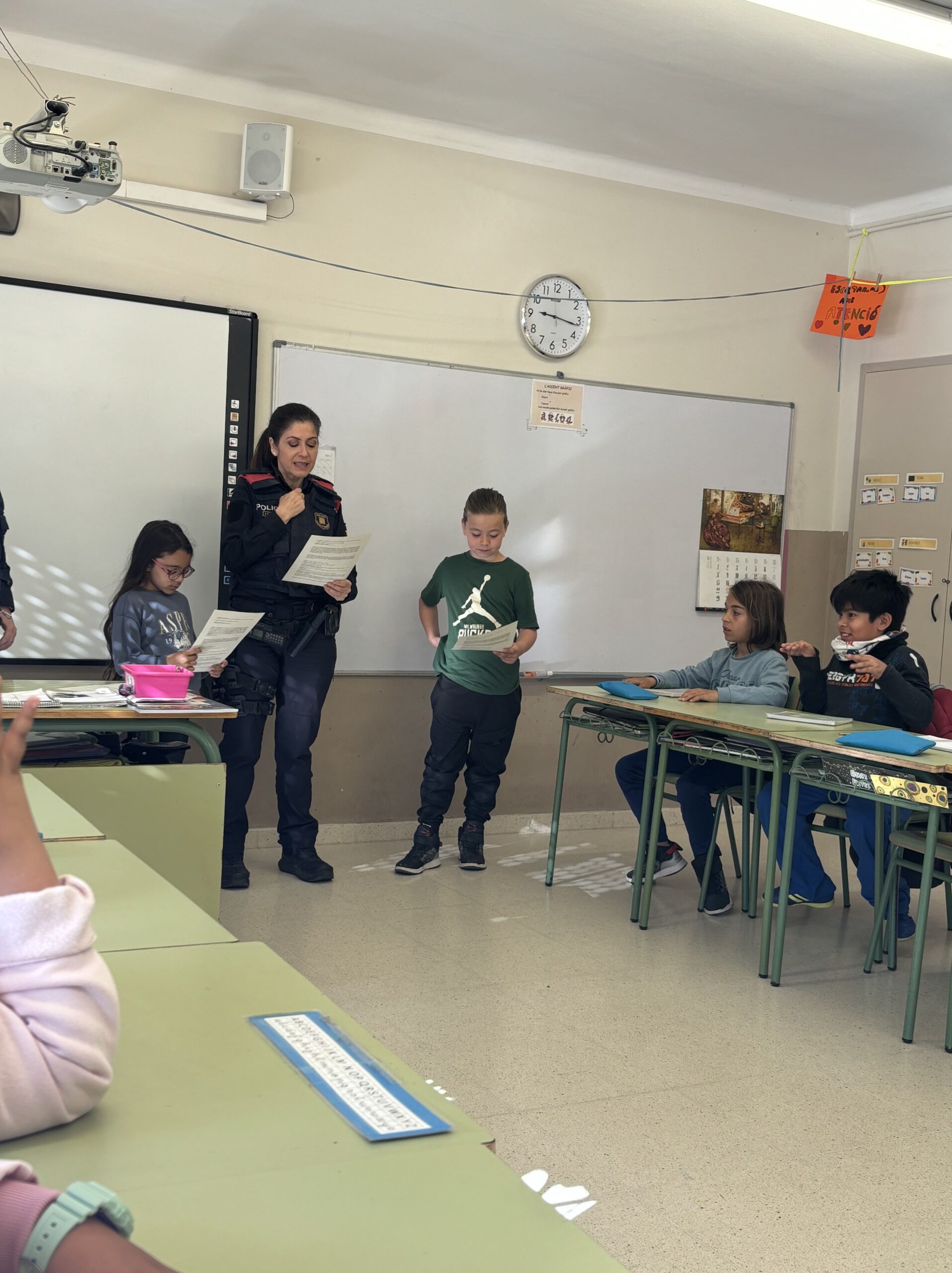 La setmana anterior ens van visitar unes representants del cos de policia local i mossos d’esquadra de Ripollet i vam poder conèixer com d’important és mantenir i seguir les normes de seguretat vial que fan més fàcil la convivència dels ciutadans quan estem al carrer. En especial, vam conèixer com fer servir correctament el patinet.